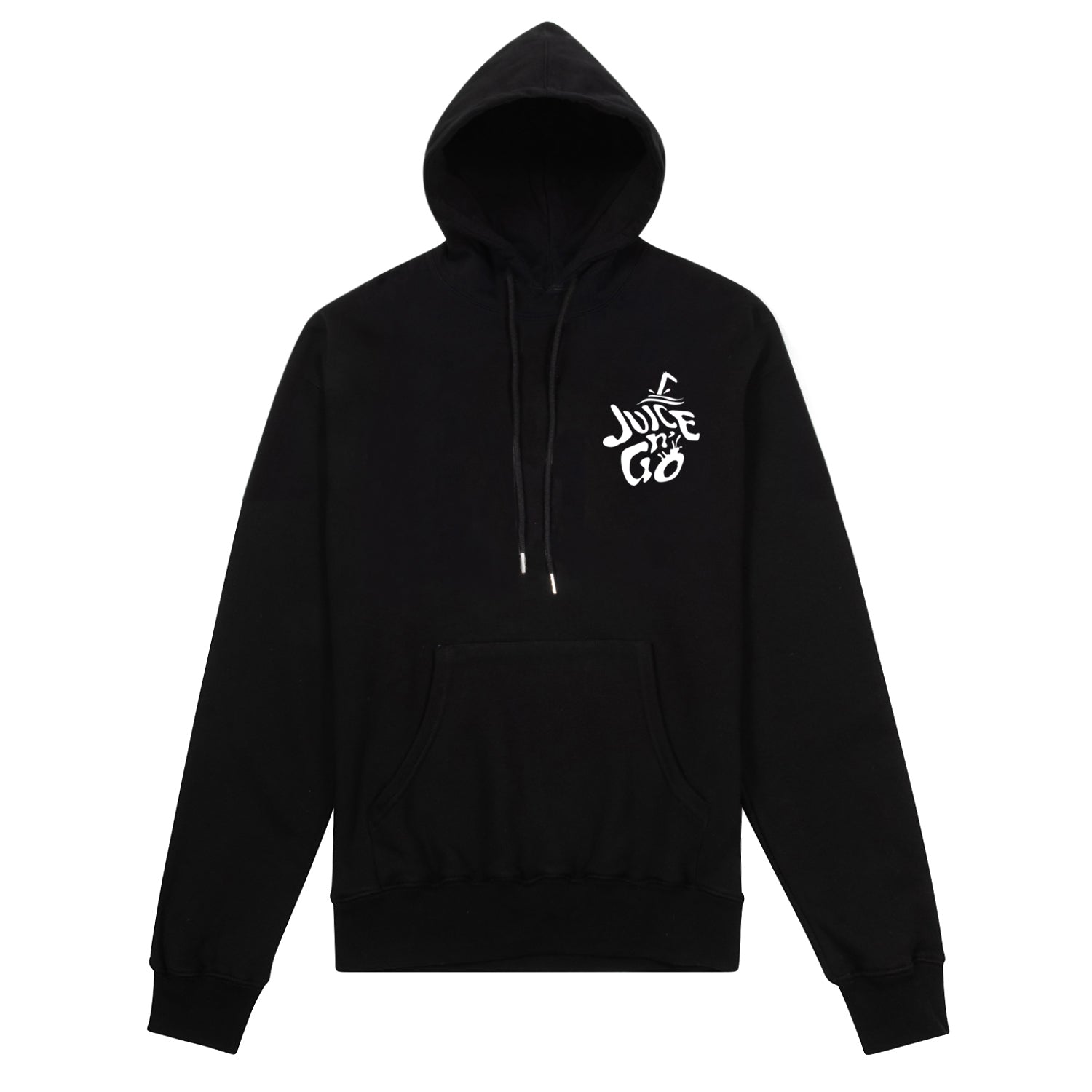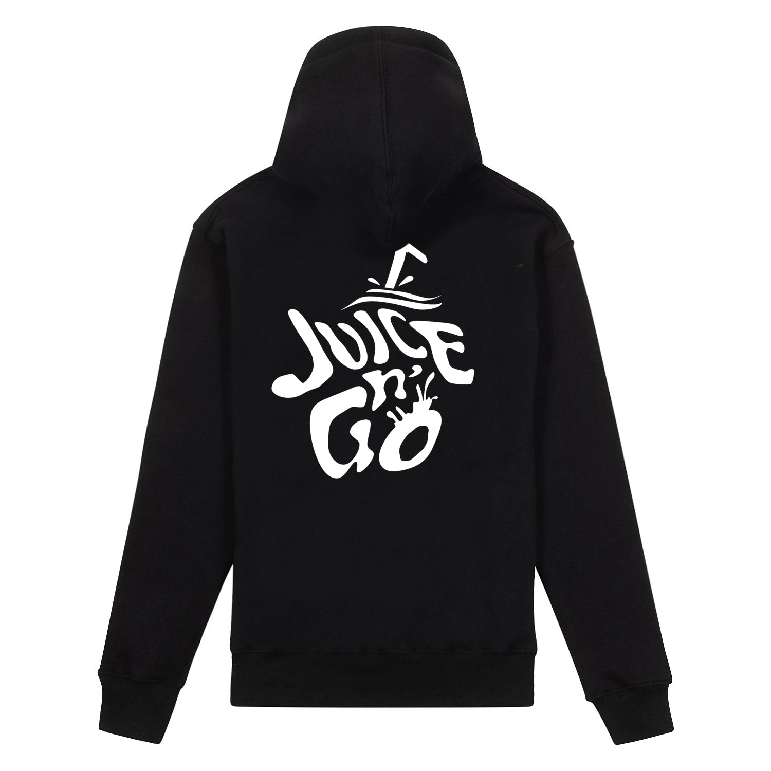 Juice N' Go black hoodie is made from soft, comfortable fabric for a relaxed fit.